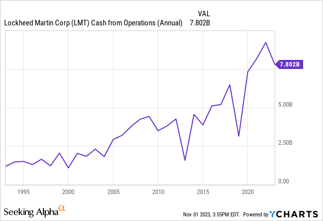 This rally had legs based on multiple tailwinds related to the war. Germany pledged to boost defense spending, offering an immediate €100B defense spending package for weapons such as F-35 fighter planes. Shortly after Canada also picked Lockheed as its preferred bidder for fighter jets. The war also caused the company to nearly double its production of Javelin anti-tank missiles as it was a key weapon in Ukraine’s defense against Russia. All of this suggests that the market is forward-looking and the run-up in the stock price is a correct assessment that the company would be a key beneficiary during war events.