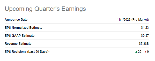 - Should the company meet the EPS target of $1.23, it’d represent a YoY growth of nearly 14%.